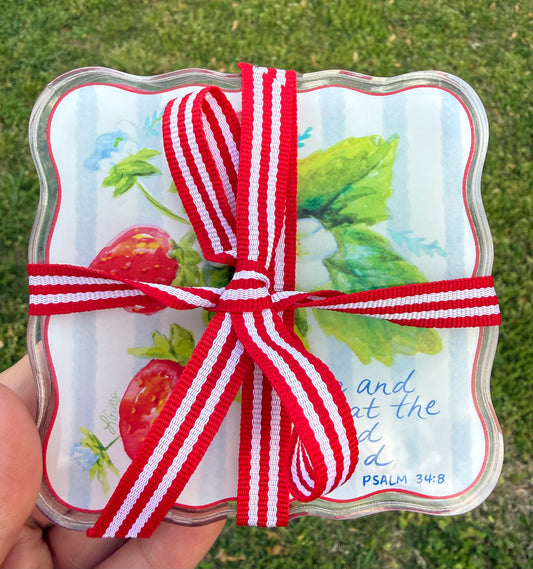 Set of 2 - Berry Coasters Psalm 34:8